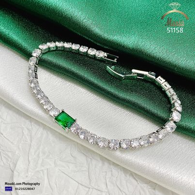 51158 انسيال تنس سلفر فصوص زيركون فص باجت اخضر