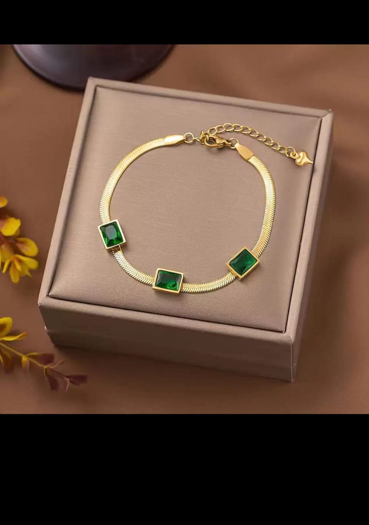 51236 انسيال ستانلس جولد عيار 316 ظهر حية فصوص باجت اخضر