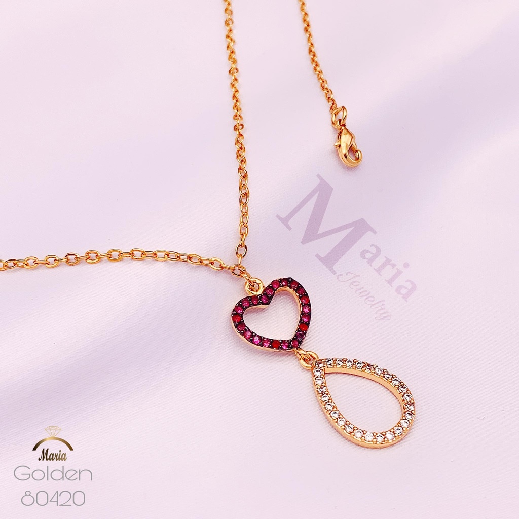 80420كوليه قلب دمعة جولد فصوص نانو بينك