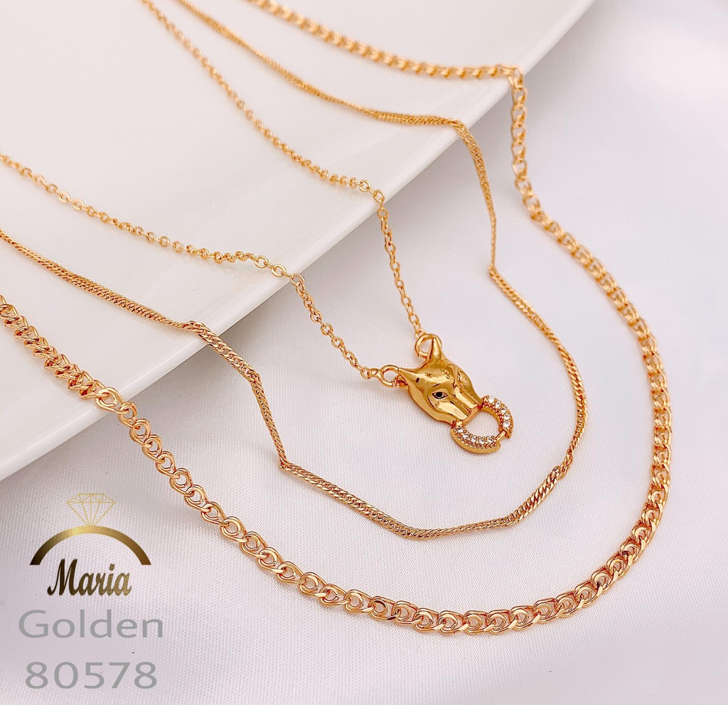80578   كوليه سلاسل  تايجر ثلاثة ادوار جولد فصوص مايكرو زيركون