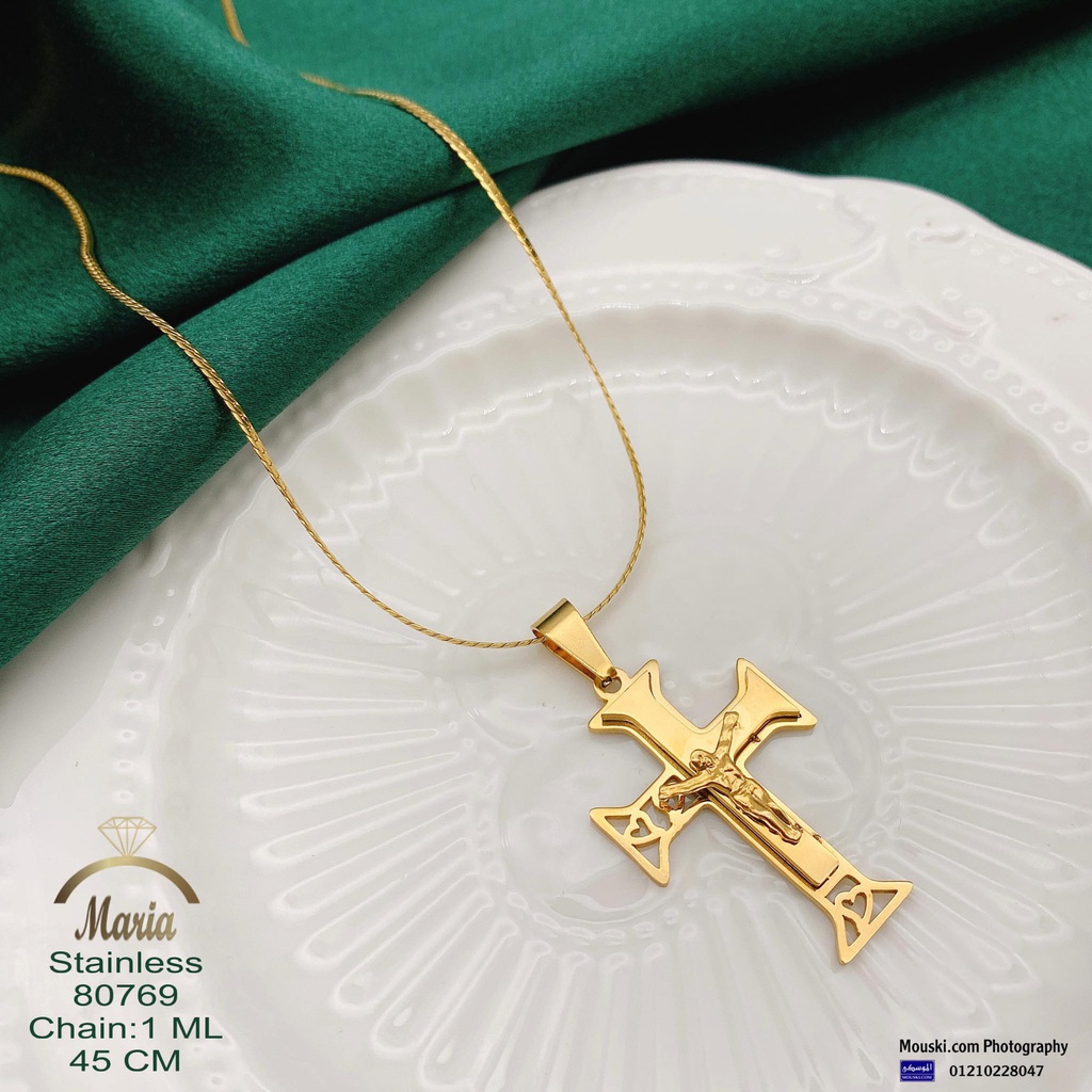 80769 كوليه ستانلس طول 45 جولد صليب سلسله جرومت