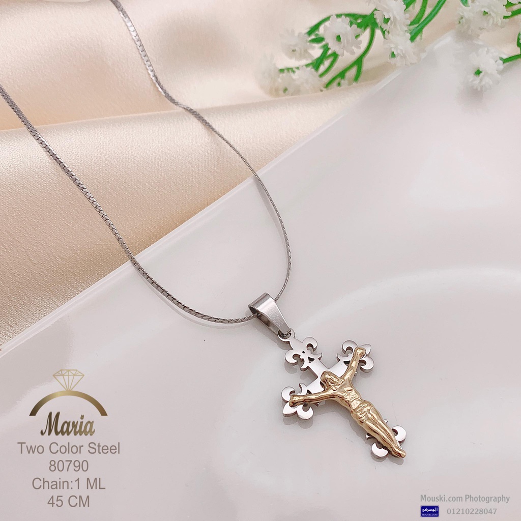 80790 كوليه ستانلس طول 45 اتنين لون صليب سلسله جرومت