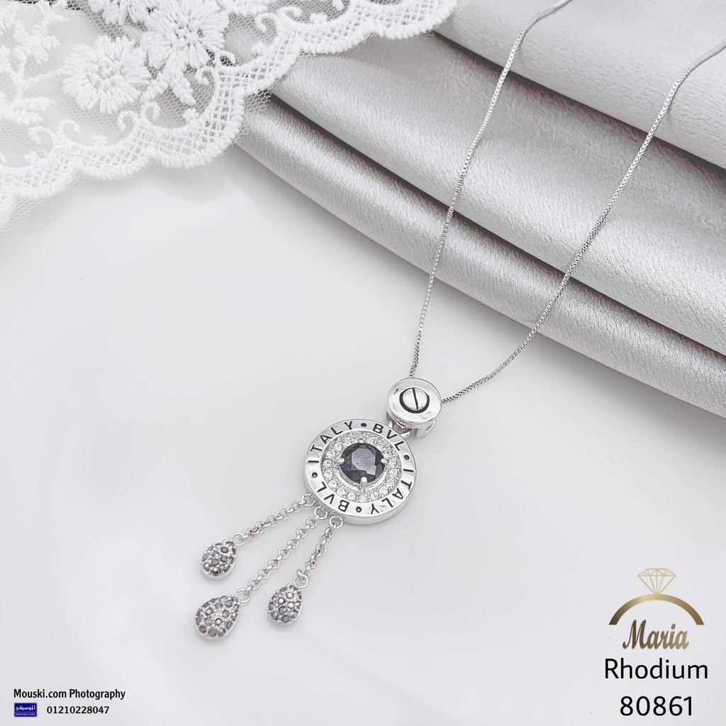 80861 كوليه سلفر سلفرسلاسل فص اسود فصوص مايكرو