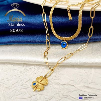 80978 كوليه جولد ستانلس عيار 316 وردة و عين دورين سلسة ظهر حية