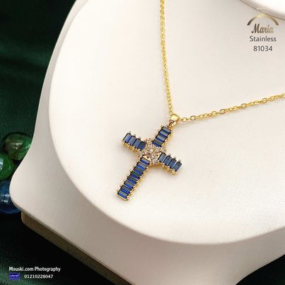 81034 كوليه ستانلس جولد عيار 316 صليب فصوص باجت كحلي