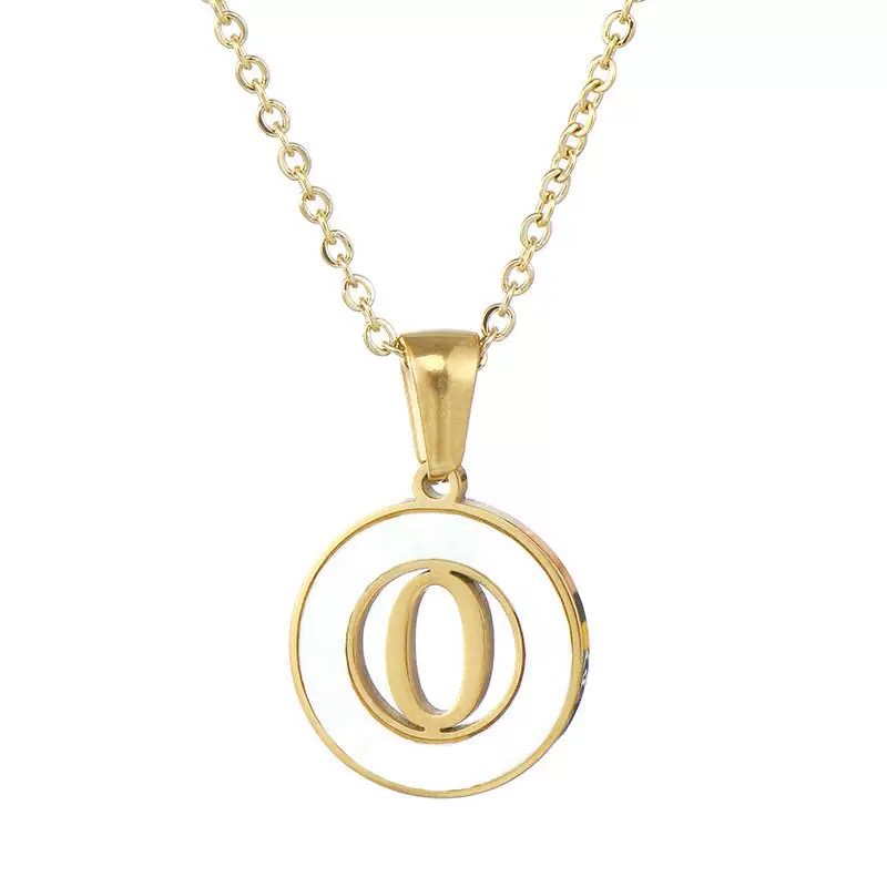 81110 ( O ) كوليه حرف ستانلس جولد عيار 316 بيور صدف ابيض اصلي