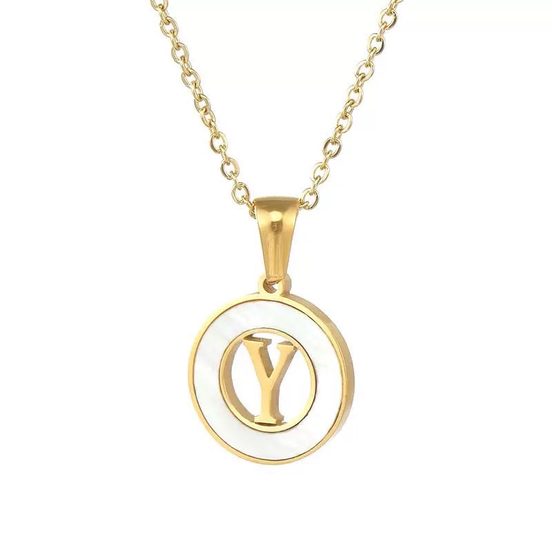 81120 ( Y ) كوليه حرف ستانلس جولد عيار 316 بيور صدف ابيض اصلي