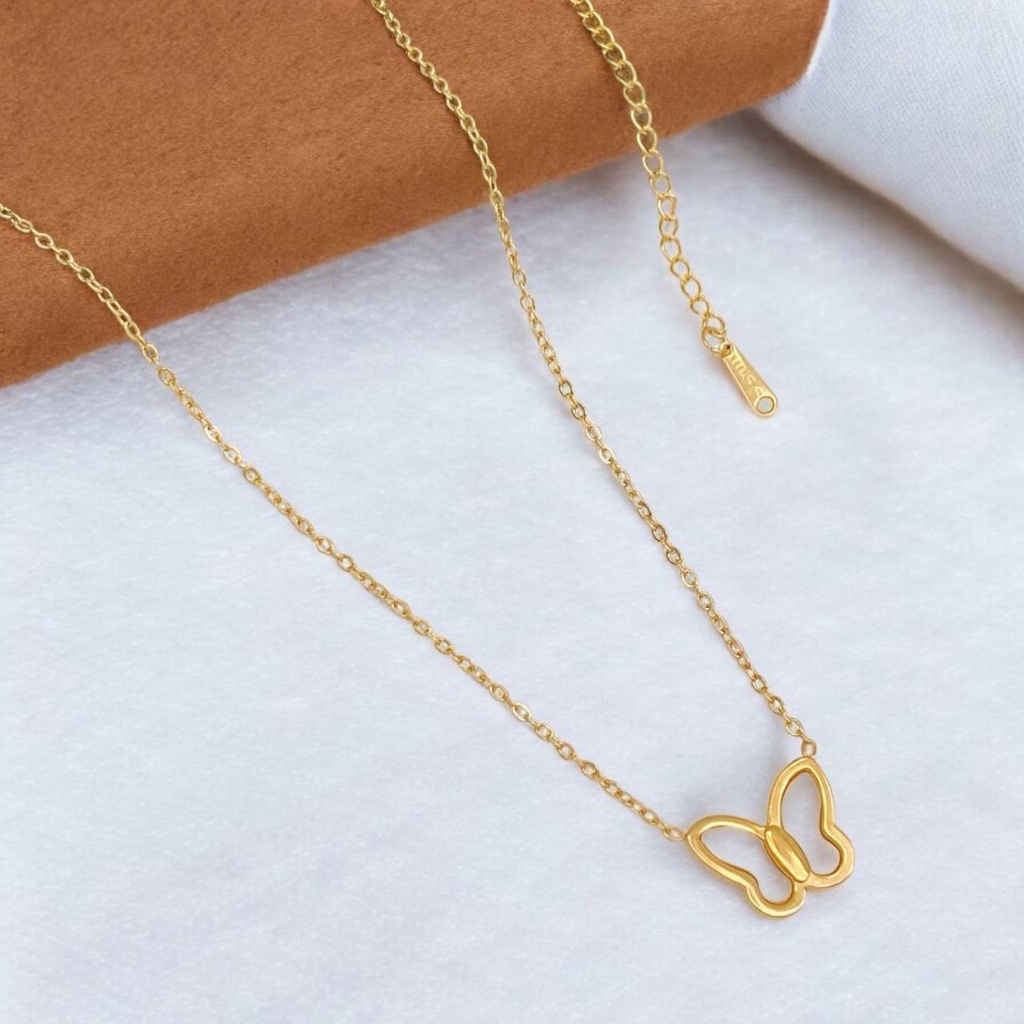 81128 كوليه فراشة ستانلس جولد عيار 316 بيور صدف ابيض اصلي