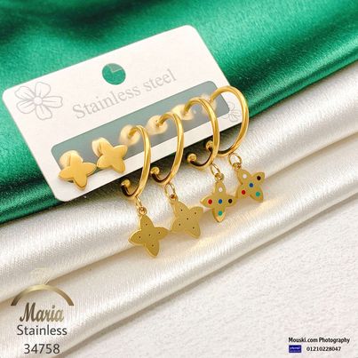 32530 حلق ستانلس عيار 316 فراشات جولد ماركة اشون