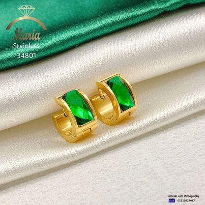 34697 حلق ستنالس جولد تكة عيار 316 فانكليف صدف اخضر فصوص مايكرو زيركون